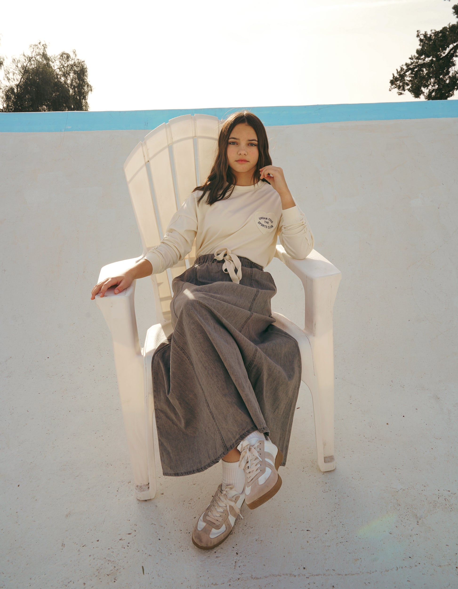 Drawstring Washed Black Denim Skirt