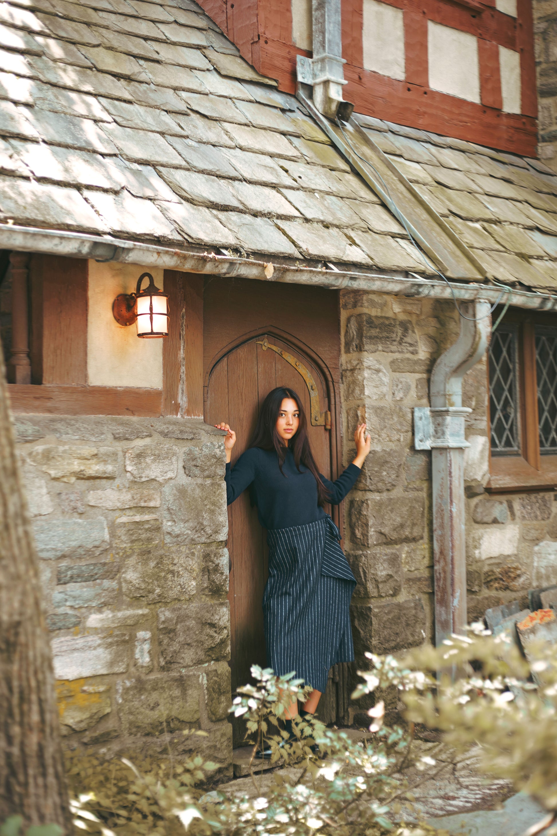 Pinstriped Wrap Skirt Navy